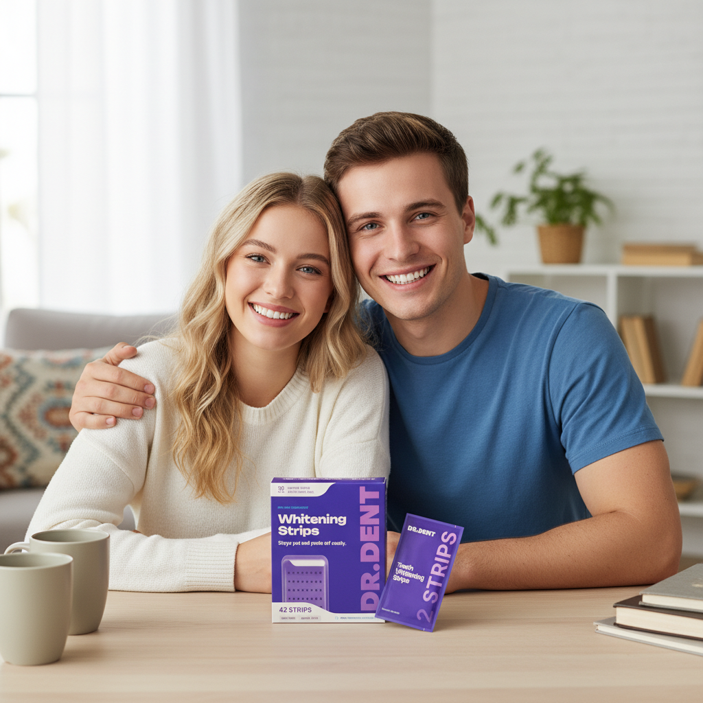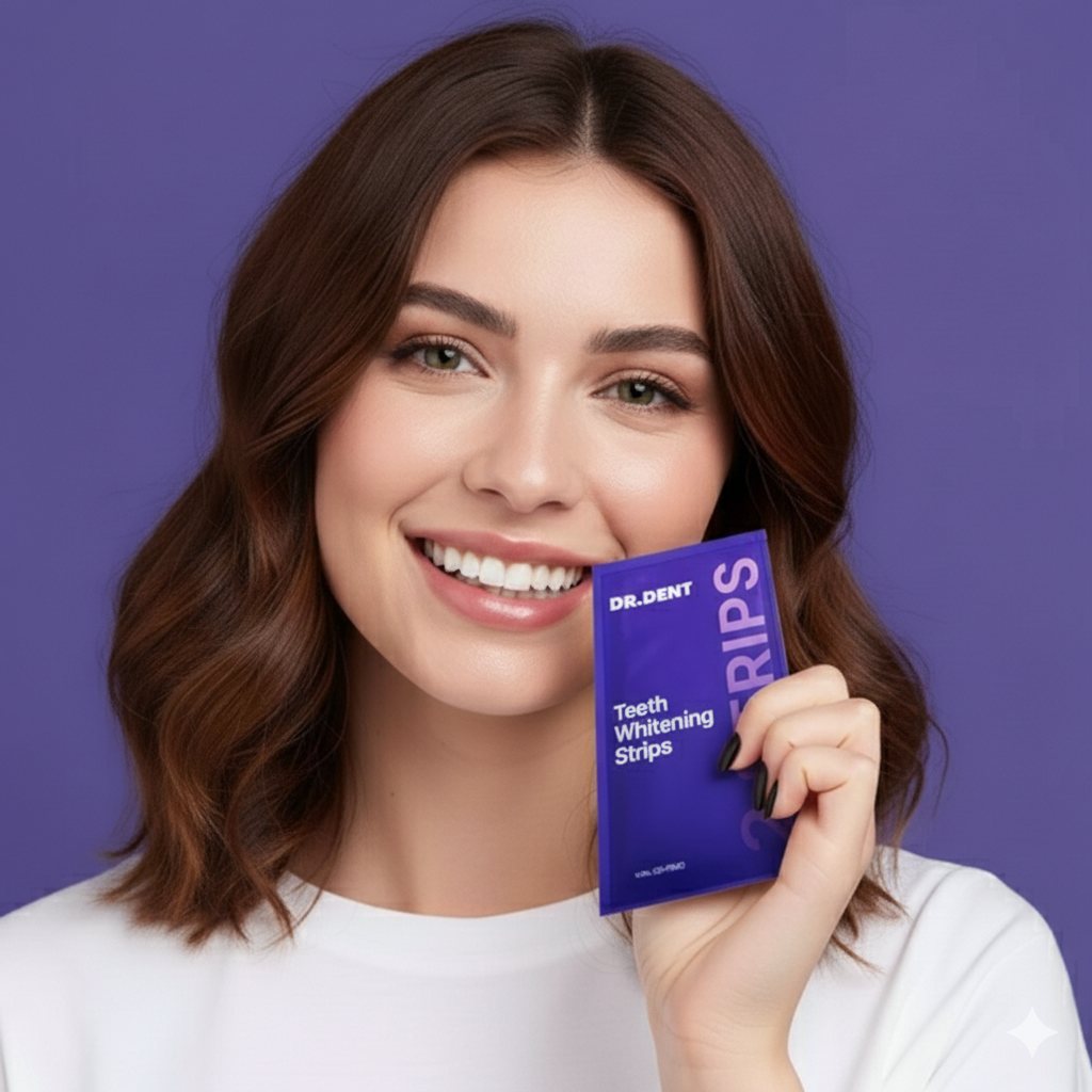Les Bandes Blanchissantes Violettes DR. DENT offrent la transformation de sourire que vous attendiez. Fini de cacher vos dents sur les photos. Fini de vous sentir mal à l'aise quand vous riez.